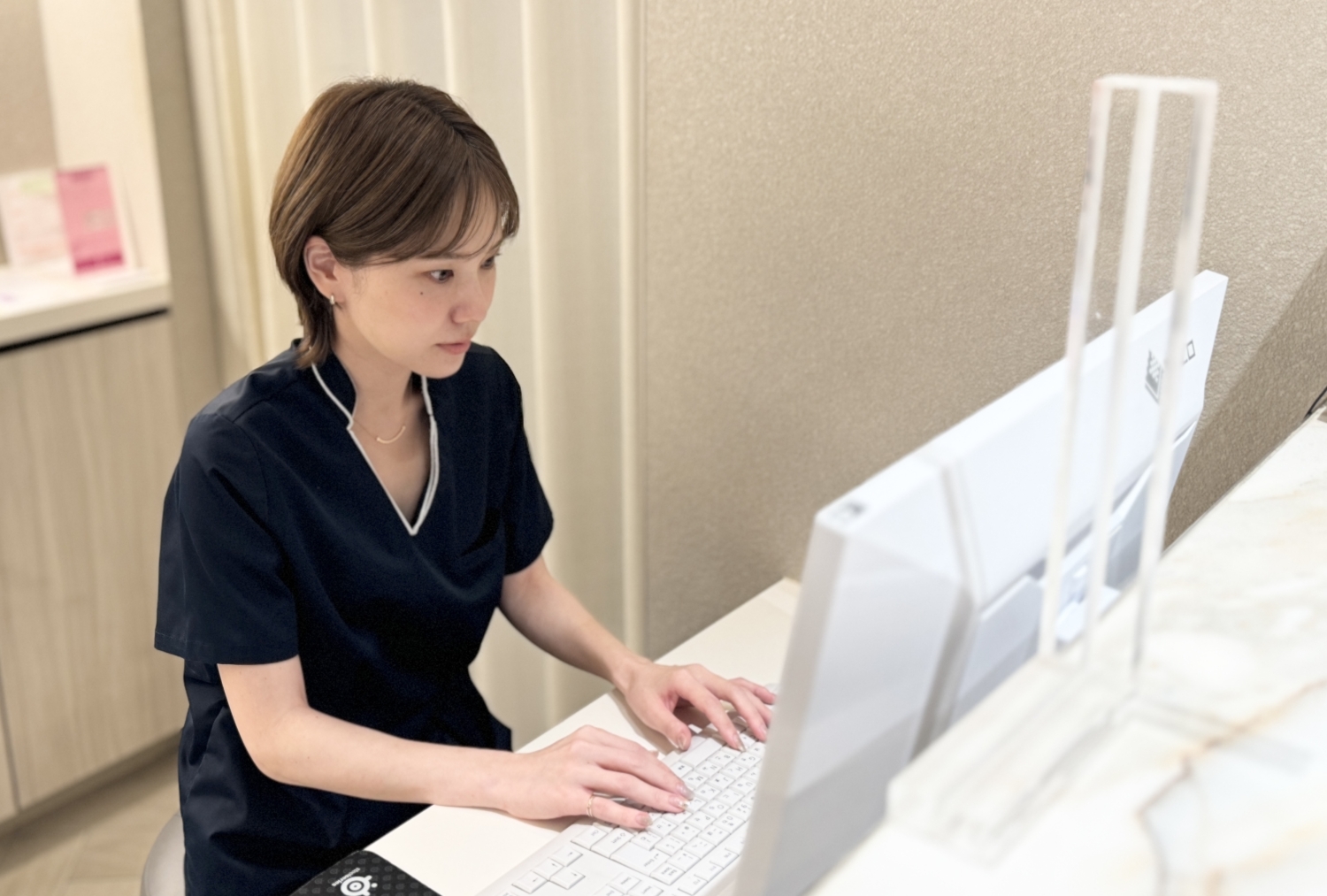 当クリニックでは完全予約制で施術・診療を行うため、慌ただしい雰囲気はありません。仕事の相談や情報共有がしやすく、助け合いながら仕事を進めています。